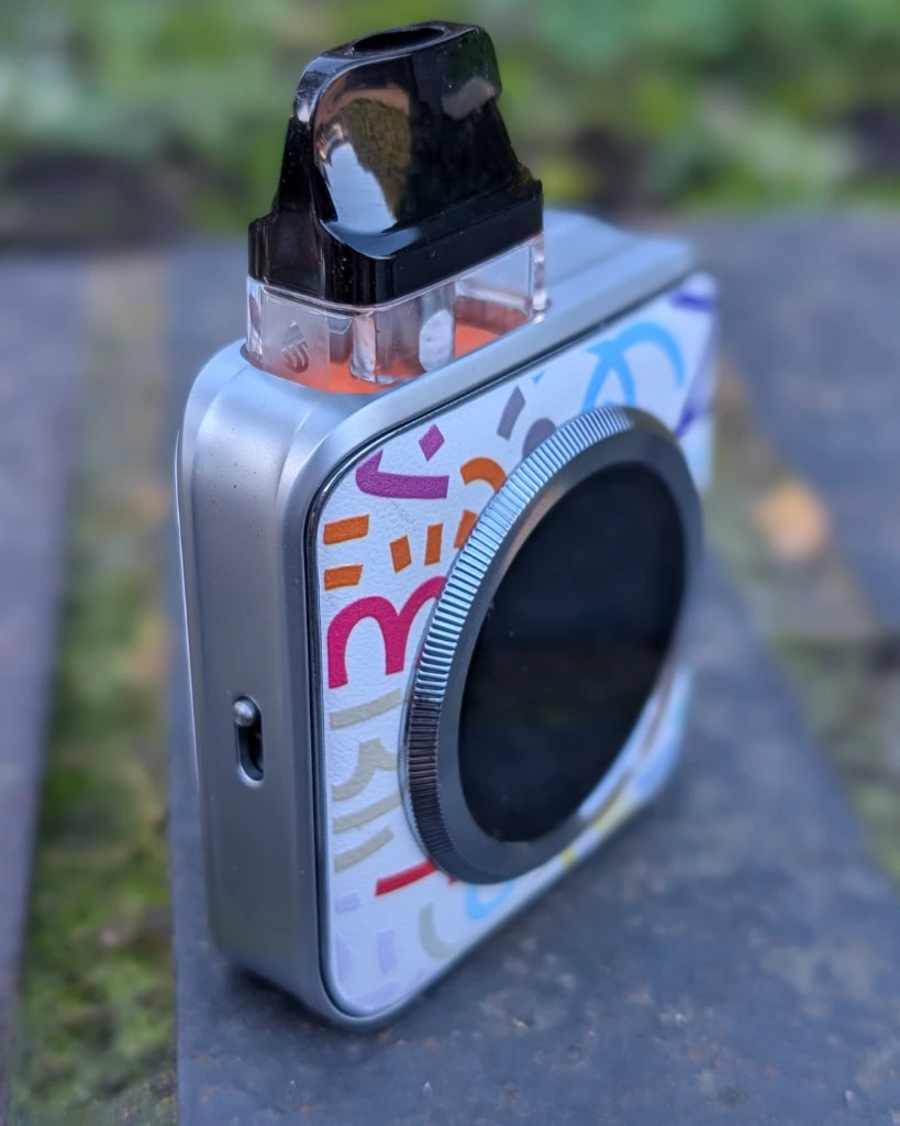 I’m a big fan of side-mounted USB ports because you can stand the device upright while charging. However, here’s my first proper gripe: because the vape is so compact and square, when you grip it in your fist, it’s very easy to block the airflow inlet with your palm or fingers accidentally. Not a dealbreaker, but occasionally annoying.